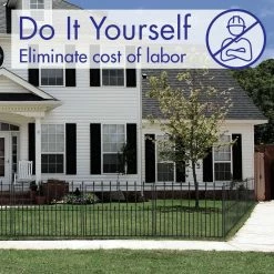 The Empire fence is a versatile fencing solution that will add style and elegance to your garden or walkway. The panel features a powder-coating for added durability and to help prevent corrosion so your fence will last for years to come. The fencing system is quick, easy, and painless to install. No digging or concrete is required for installation, simply drive stake post unit into ground using a hammer or mallet and join panels together by passing the posts through the eyelets. Each panel is sold separately. Please refer to the Empire fence line for matching posts, gates, and required accessories for installation.